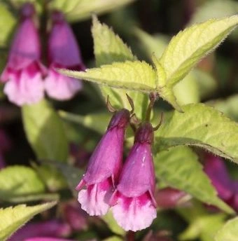 Kwiaty mają jasnofioletową do liliowej barwę i charakterystyczny, dwuwargowy kształt, kojarzony z roślinami z rodziny jasnotowatych. Zebrane są w luźne kwiatostany na szczytach pędów i rozwijają się od lata do wczesnej jesieni, a roślina w okresie kwitnienia osiąga zwykle około 60–80 cm wysokości.